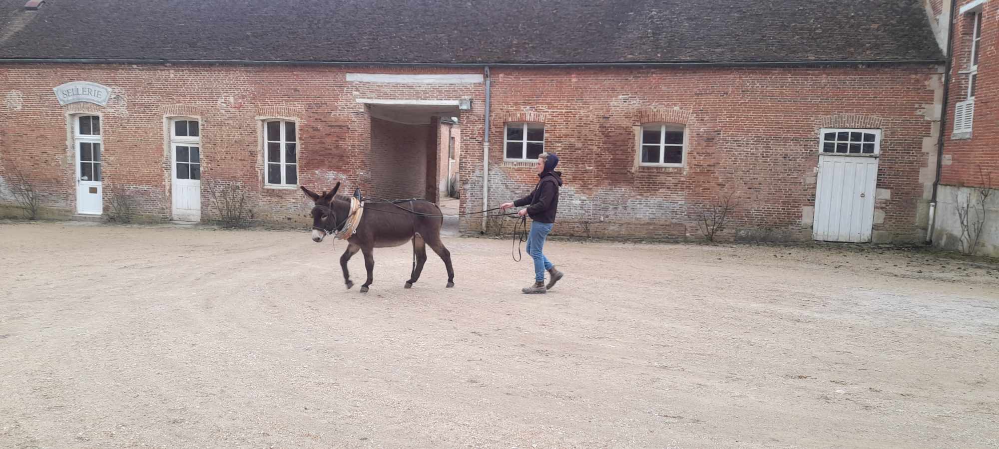 Le week-end dernier, du 14 au 16 mars 2025, j’ai pu participer à une initiation à l’attelage avec des ânes. Un stage très riche en expérience avec Caroline Charpentier.