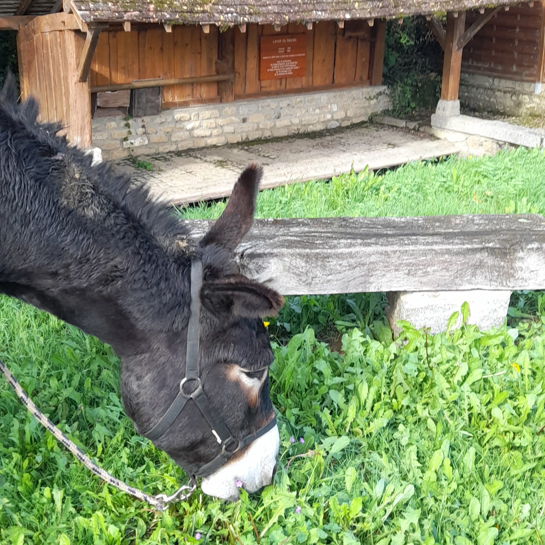 Puis de 13h00 à 14h00, nous laisserons les ânes se reposer et faire le plein d’herbe.